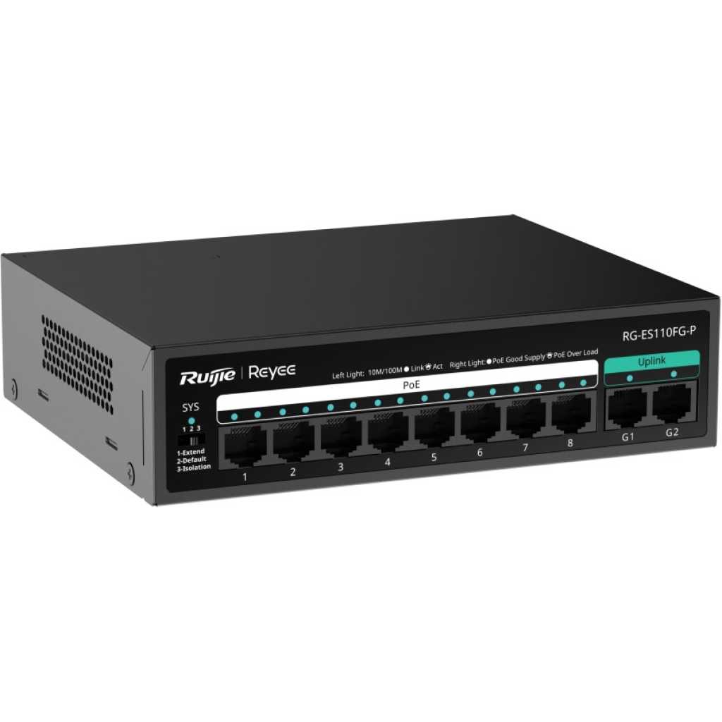 RG-ES110FG-P 8-Port 10/100 Mbps with 2-Port Gigabit Unmanaged PoE Switch