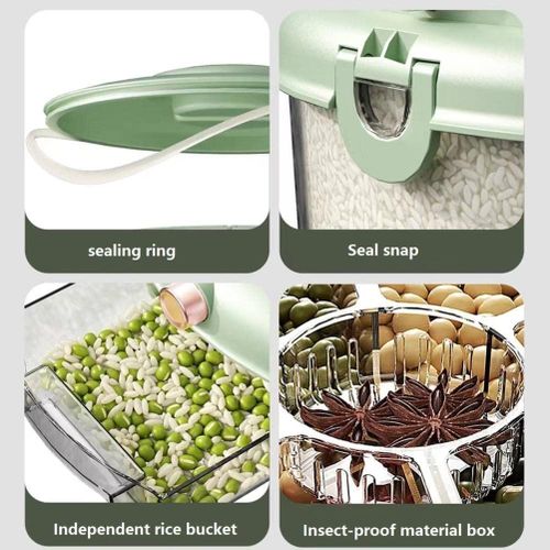 Rice Dispenser, Automatic Dispenser Grain Storage Bin, 360° Rotatable Household Rice Bucket