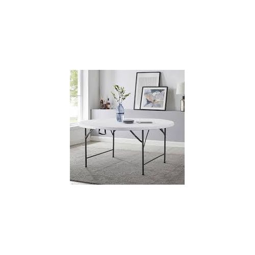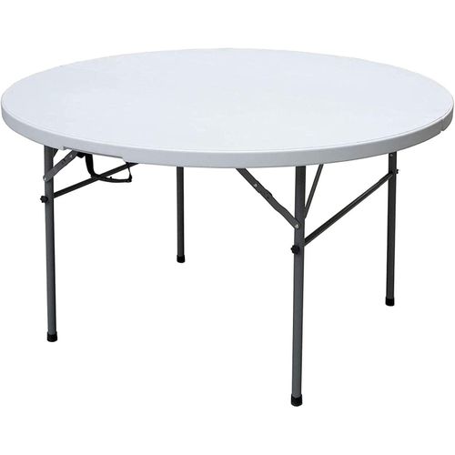 Round fold-in-half folding table made of premium material that withstands all weather seasons. This makes the table suitable for indoor and outdoor use. This deluxe folding table folds in half with a carry handle, so you can easily take it out and about with you when you’re camping or enjoying a day out in the countryside。
