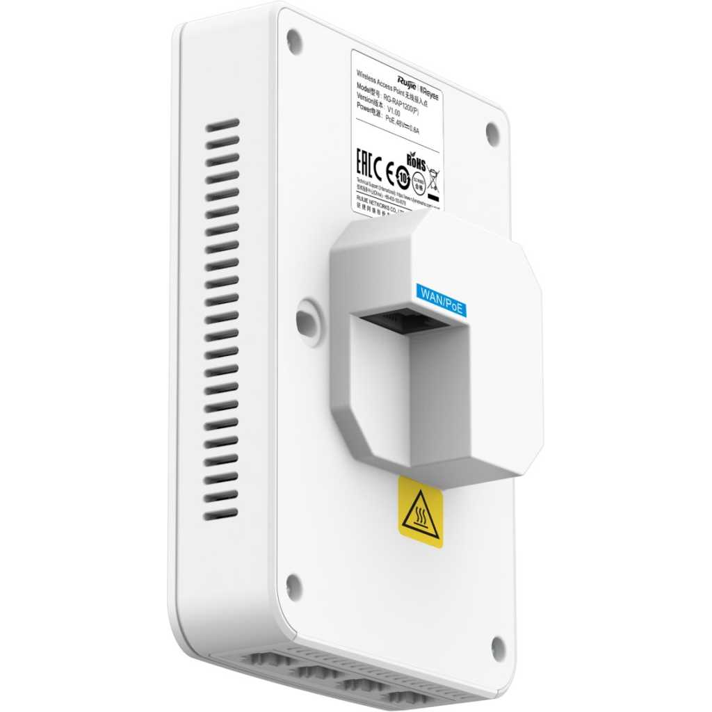 The Ruijie RG-RAP1200(P) is a wall-mounted, dual-band Wi-Fi 5 (802.11ac) access point that supports up to 1.267 Gbps with a 2.4 GHz speed of 400 Mbps and 5 GHz speed of 867 Mbps. It is designed for use in various environments like hotels, offices, and apartment buildings, offering features like MU-MIMO and smart networking capabilities.
