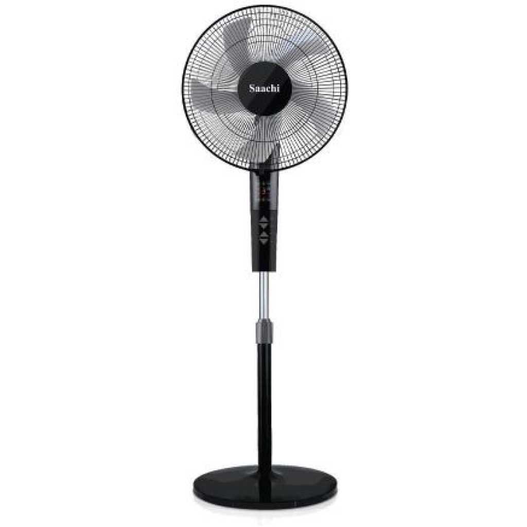 Product Specification: The Saachi stand fan with remote control measures 16 in. in height and comes in a sleek black colour. It works efficiently and produces a low noise as it operates on an in-built 60W copper motor.