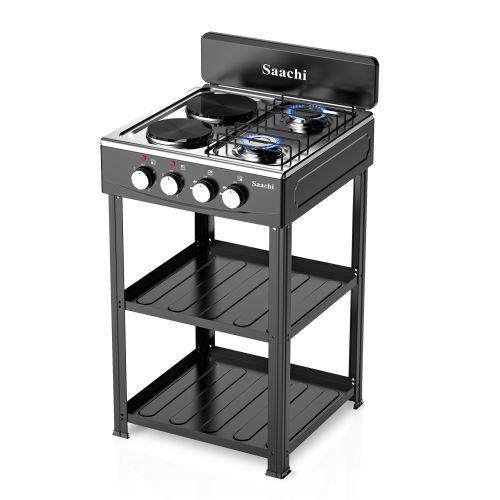 Saachi Stainless Steel Gas Burner With 2 Gas Tops, 2 Hot Plates & Shelves NL-GAS-5358 – Black.