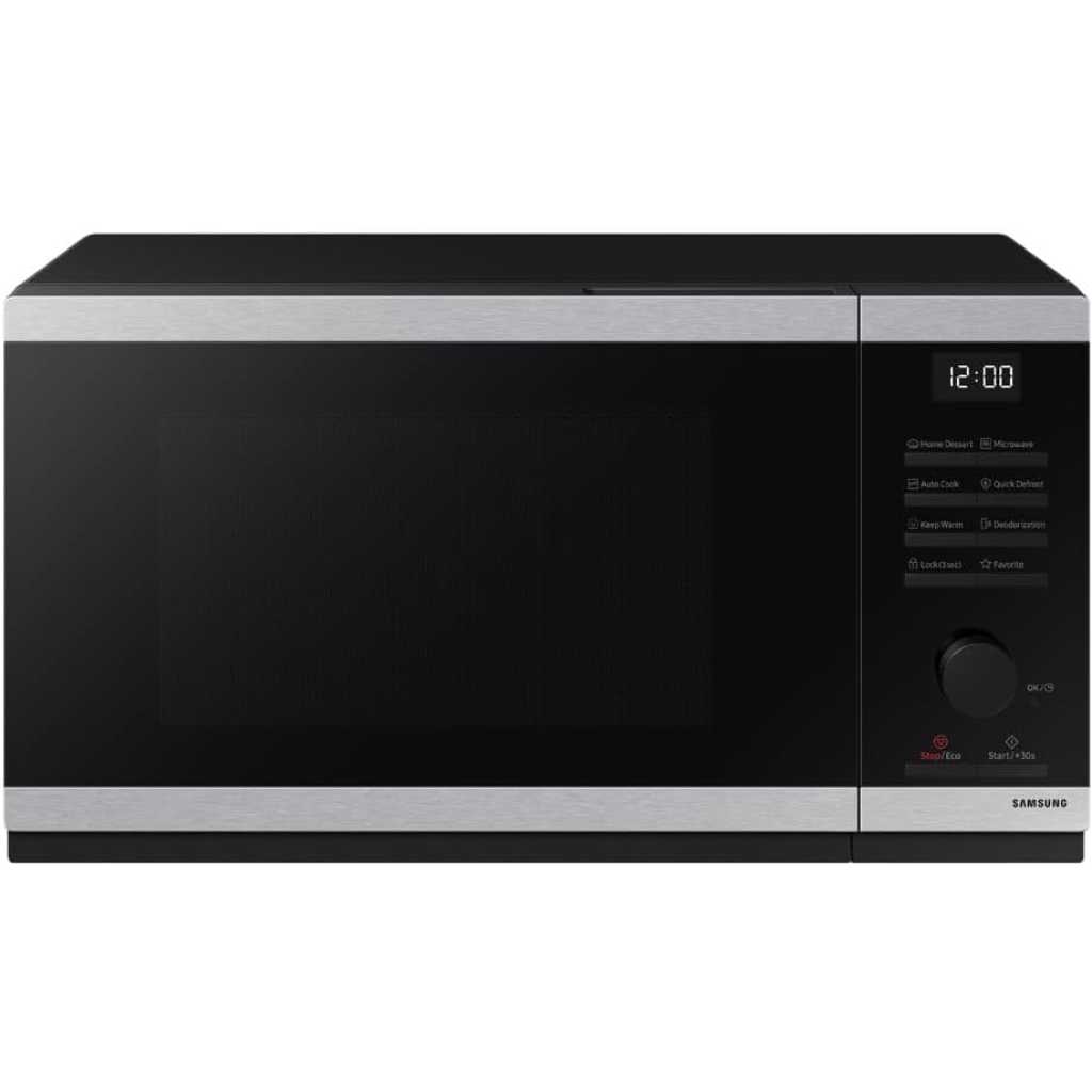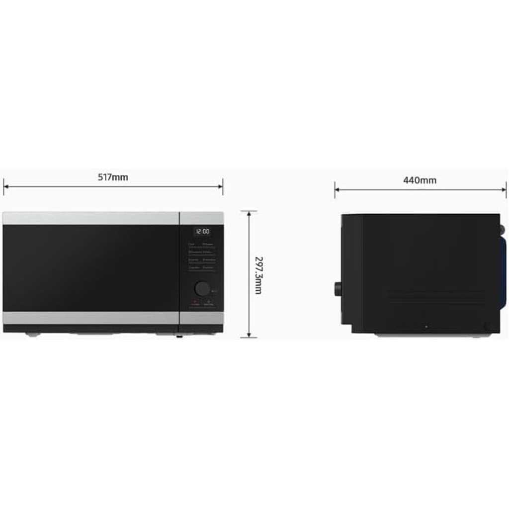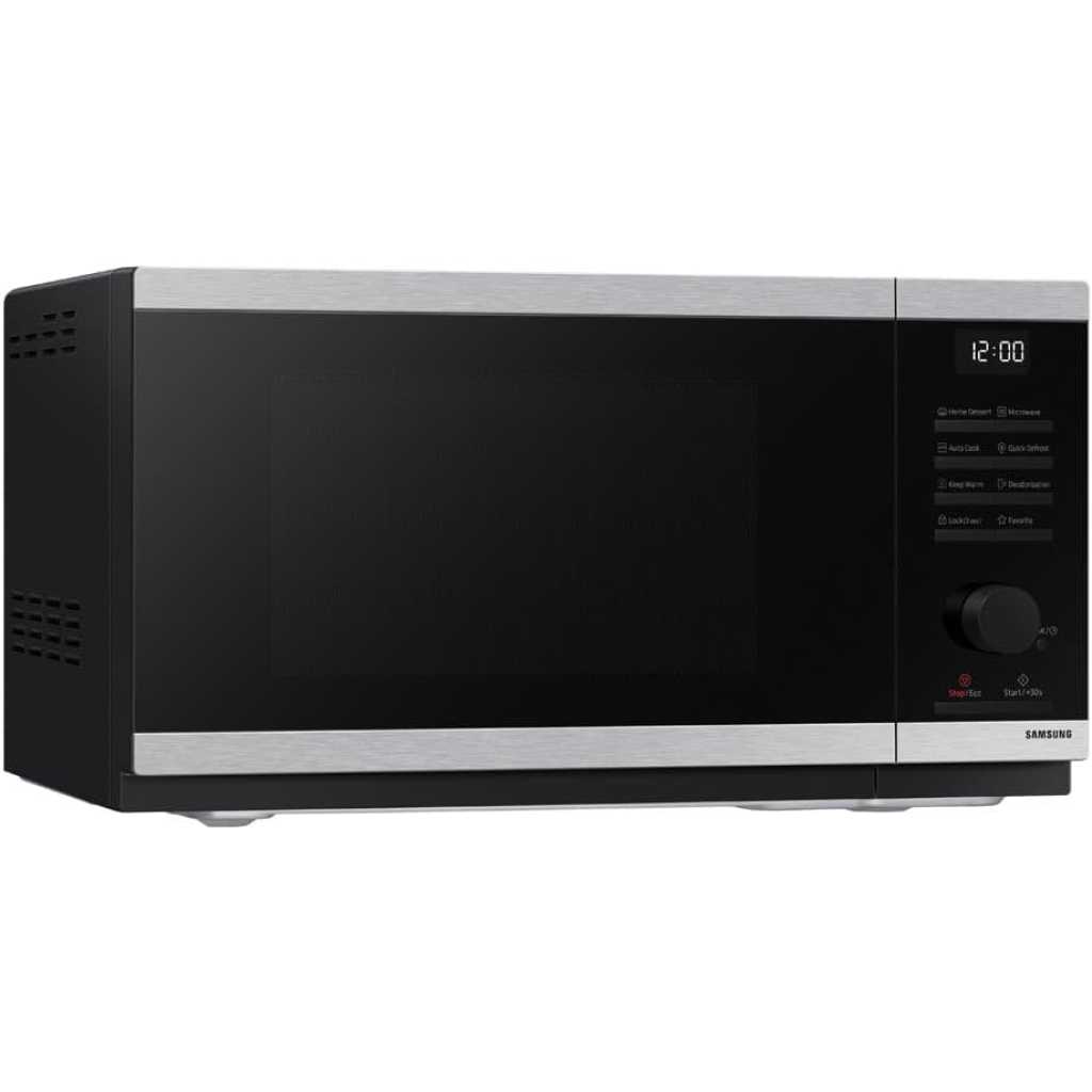 - What’s in the box: Samsung Solo Microwave, 800W, Capacity: 23 Litre, Dimensions: 37.7 x 27.5 x 48.9 cm, Weight: 12.2 kg, Stainless Steel, MS23DG4504ATE3