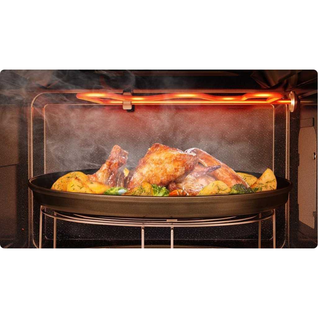 - Steam Cook – Enjoy healthy steam cooked food with the Pure Steamer,¹ Simply put water in the heat-resistant² pure steamer and place the ingredients on the rack, Then enter the food type and size and it optimises the cooking time