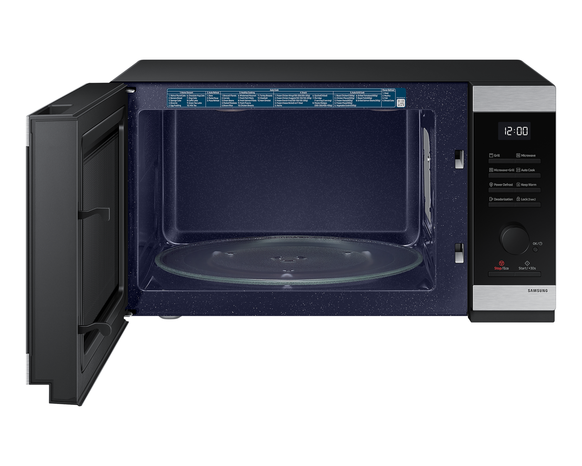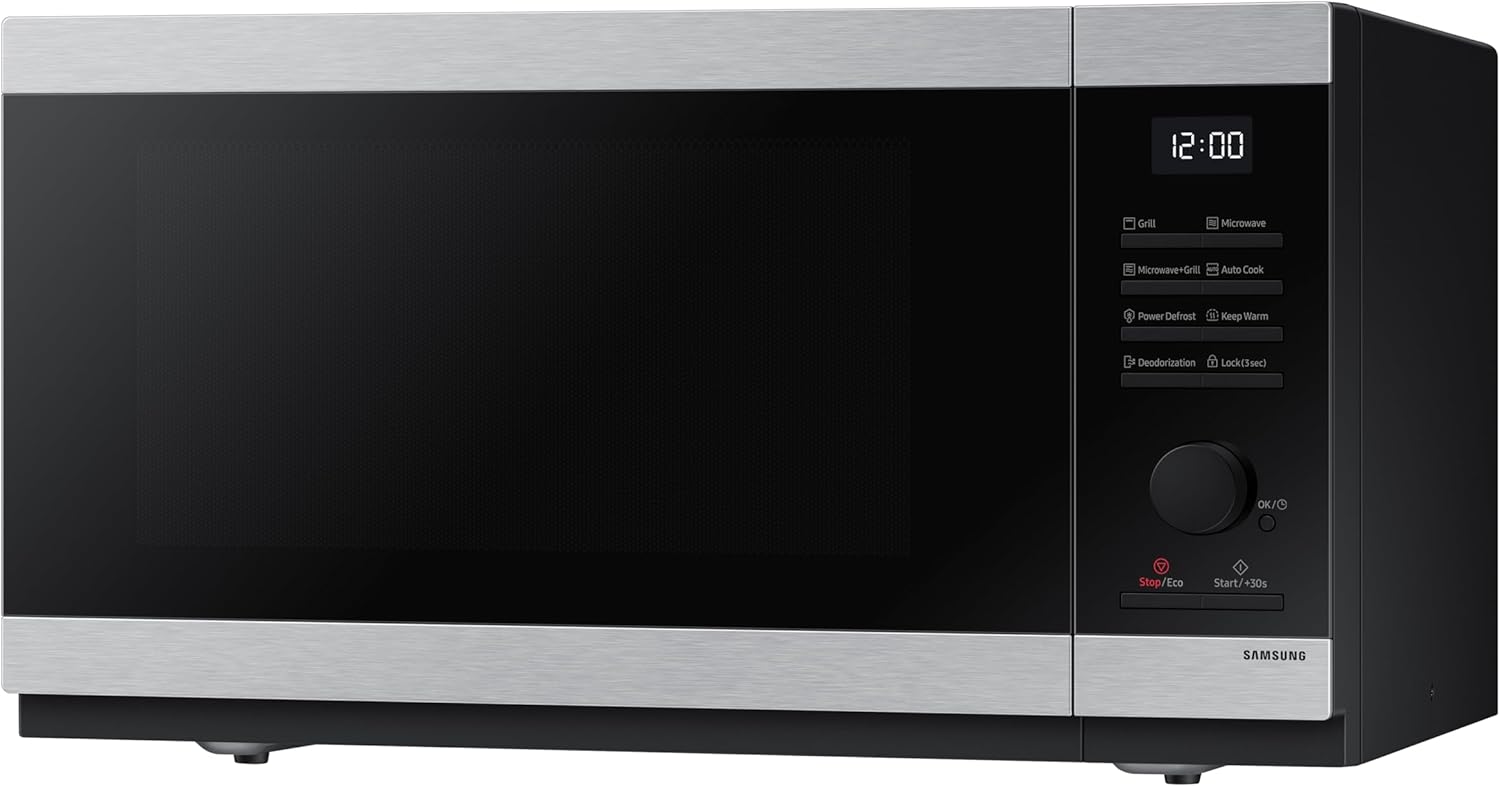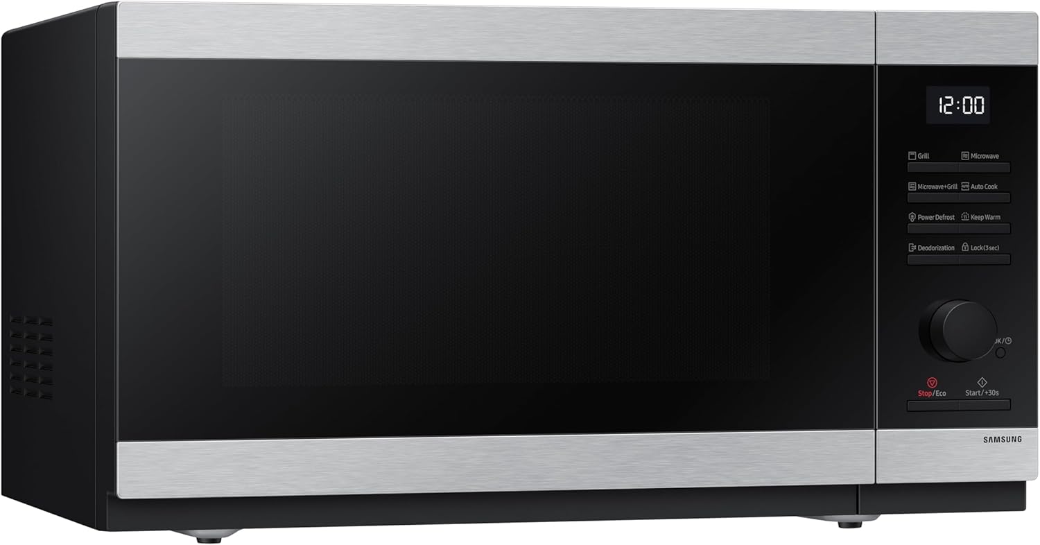 What’s in the box: Samsung Solo Microwave, 800W, Capacity: 23 Litre, Dimensions: 37.7 x 27.5 x 48.9 cm, Weight: 12.2 kg, Stainless Steel, MS23DG4504ATE3