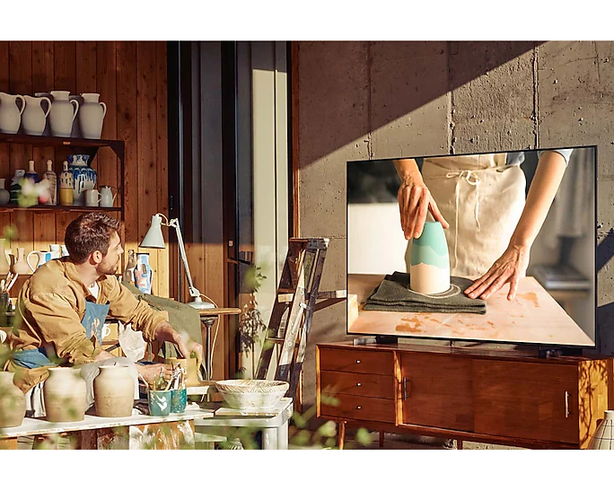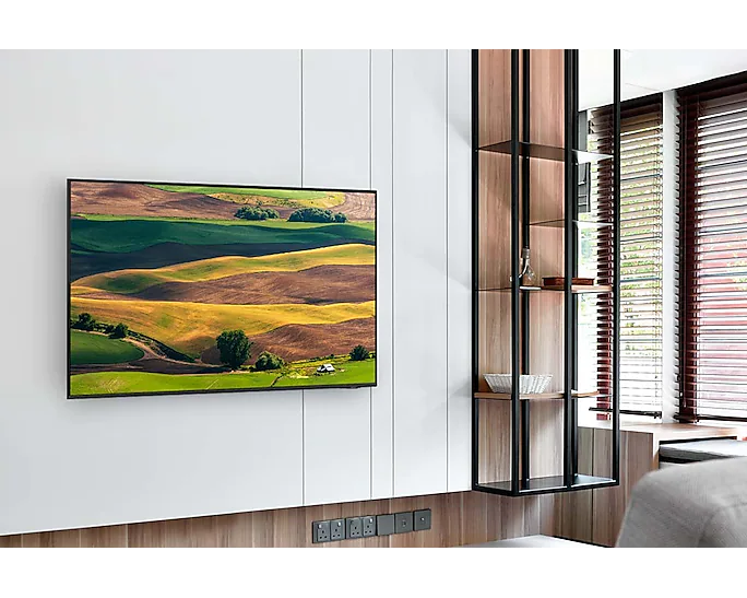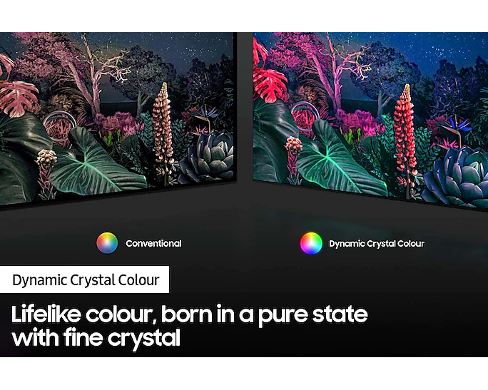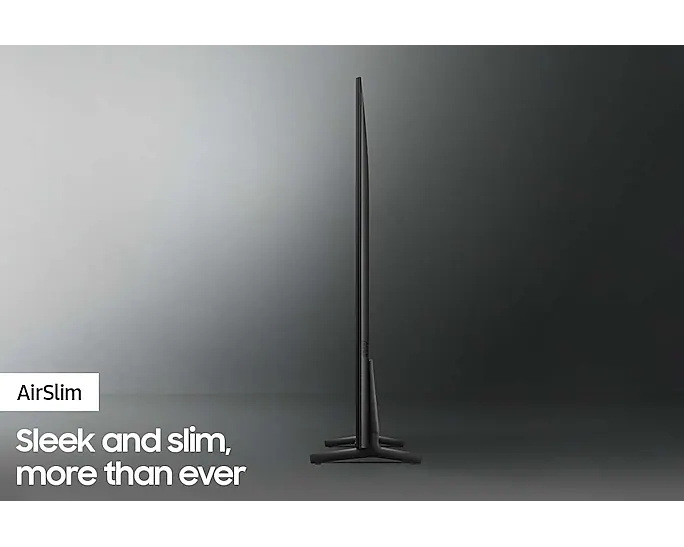 - The stylish AirSlim design makes this Crystal UHD TV the perfect complement to any home. At just 27mm, it boasts an incredibly thin profile that is designed to blend in seamlessly. With no bulky bezels, and built-in cable management to help reduce clutter, you can enjoy the action without distraction.
