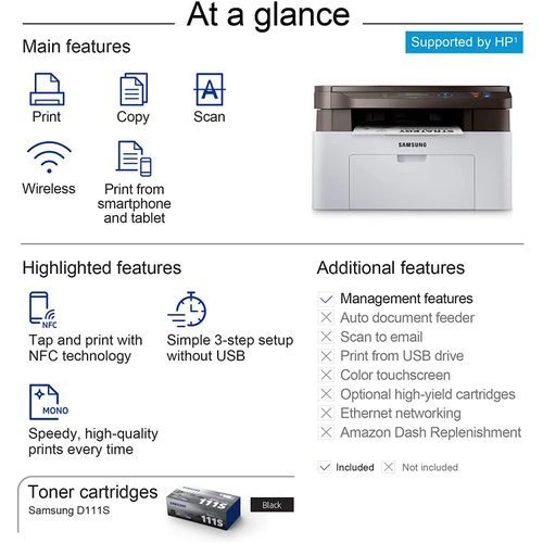 - ORIGINAL SAMSUNG CARTRIDGES – Use Samsung MLT-D111S toner cartridge for best results.