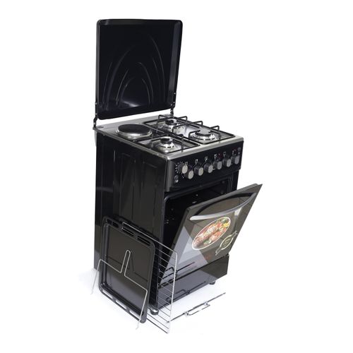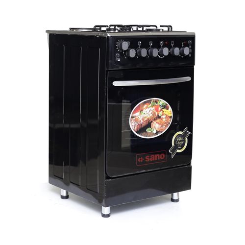 Sano 55X55 3 Gas 1 Electric Cooker; Electric Oven & Grill, Rotisserie, Auto Ignition, Timer, 2 Oven Trays – Black.