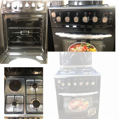 Is a high-quality affordable cooker with 3 gas burners, 1 electric hot plate, a wide double electric oven that offers big space for baking and grilling, a rotisserie for roasting chicken, temperature control for the oven, a timer for easy baking, an oven lamp, double glass oven door for safety and reducing heat loss in the oven, ignition, adjustable stands, stainless steel top, grill, oven trays. Comes with 2 YEARS GUARANTEE AND 3 YEARS WARRANTY. All our cookers are based on German technology made in TURKEY and assembled in UGANDA.