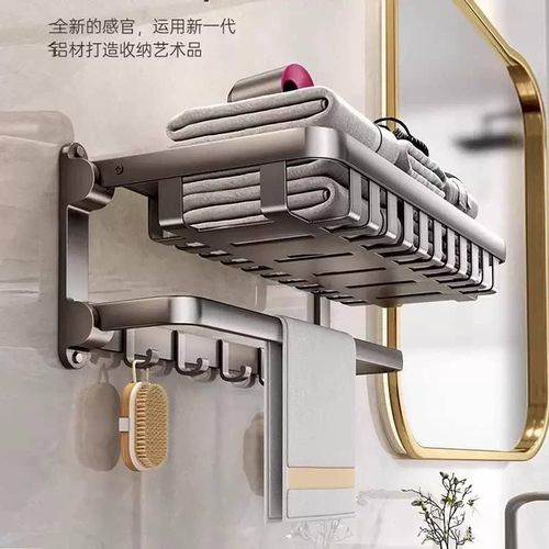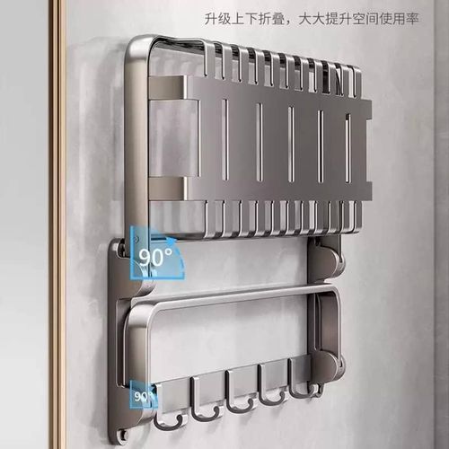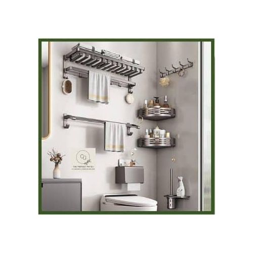 KK5 Bathroom Towel Rack Shelves Set of 6 – Foldable Towel Holder with Towel Bar & 9 racks for Shower Room Organizer Bathroom Storage Kitchen Towels Bathrobes Shower Caddy Brush Space Aluminum Wall Mount