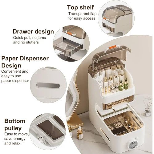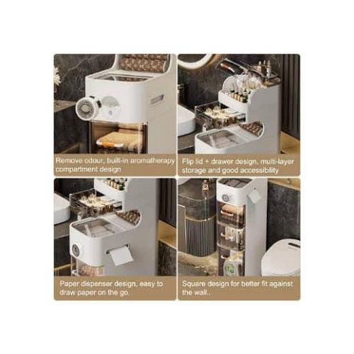 - 【Attentive Design】: The freestanding cabinet is made of high quality polypropylene and built in a solid structure with high load capacity,do not worry about moisture, waterproof and dustproof;Large flap design on the top for easy access to items; Smooth edge, smooth pulling; Easy to use with an opening on the side for tissue.Built-in aromatherapy grid design and easy to disassemble and assemble, eliminates odors and makes the bathroom fresher