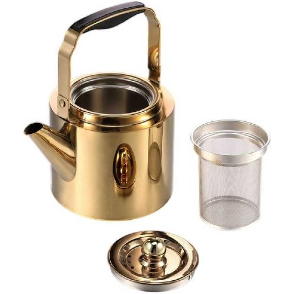 Premium Material: Crafted from quality stainless steel , this teapot offers exceptional durability . Its versatile design allows use on induction cookers , gas stoves , electric heaters , ceramic hobs , and even charcoal stoves , meeting all your brewing needs