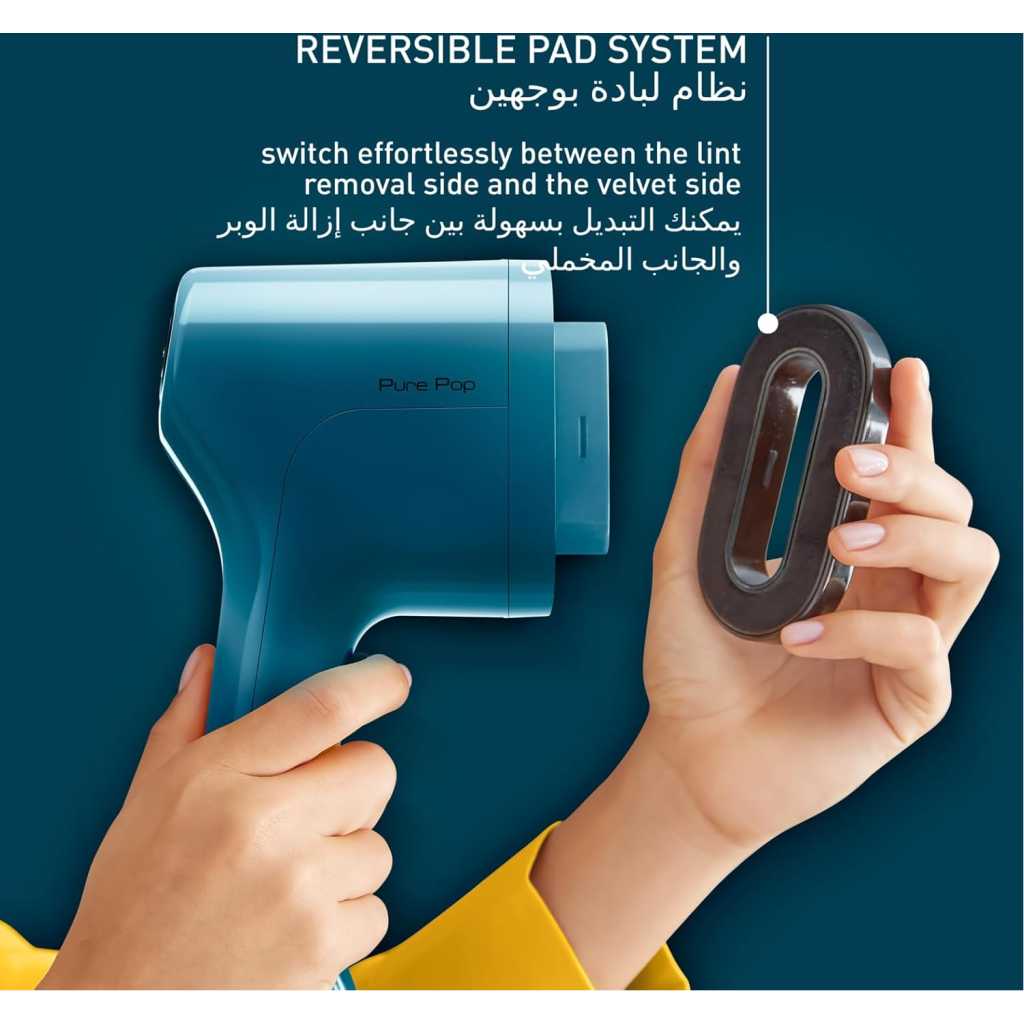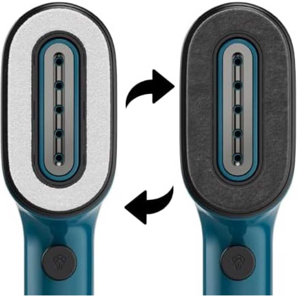 Innovative reversible pad system lets you switch effortlessly between sides, for truly handheld garment care.