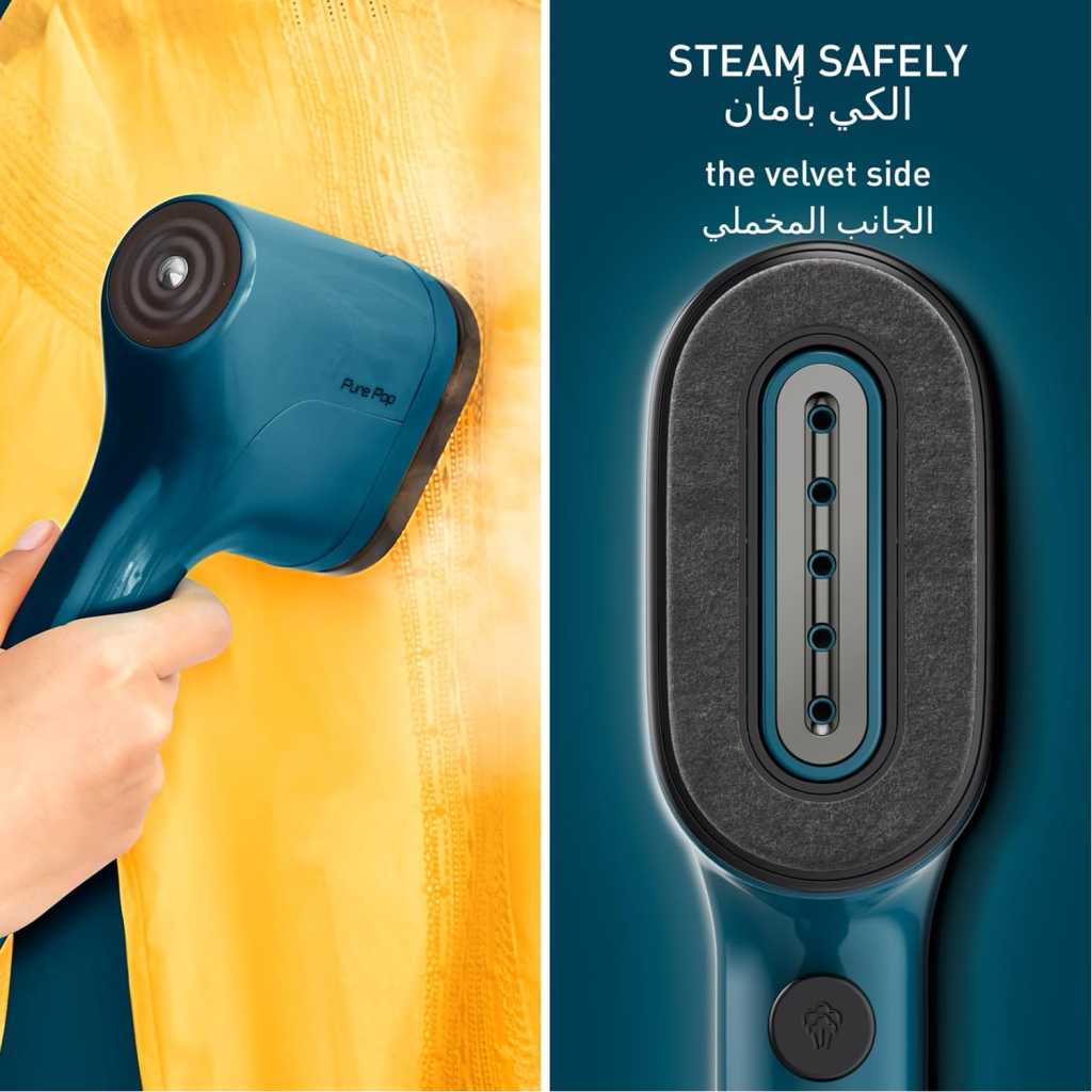 Join the movement: Introducing Tefal Pure POP, your personal garment steamer that steams any style on the go. This handheld garment care solution is highly intuitive, offering full care in one smooth and natural movement. The exclusive reversible lint and velvet pad system offers effortless switching, with an ultra-compact and slim design to bring it with you everywhere you go! With Pure POP, take garment care to a whole new level… all with a touch of vibrant style.