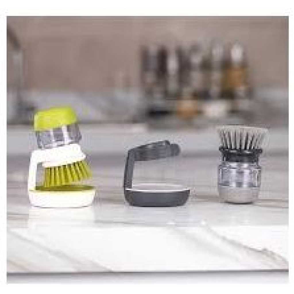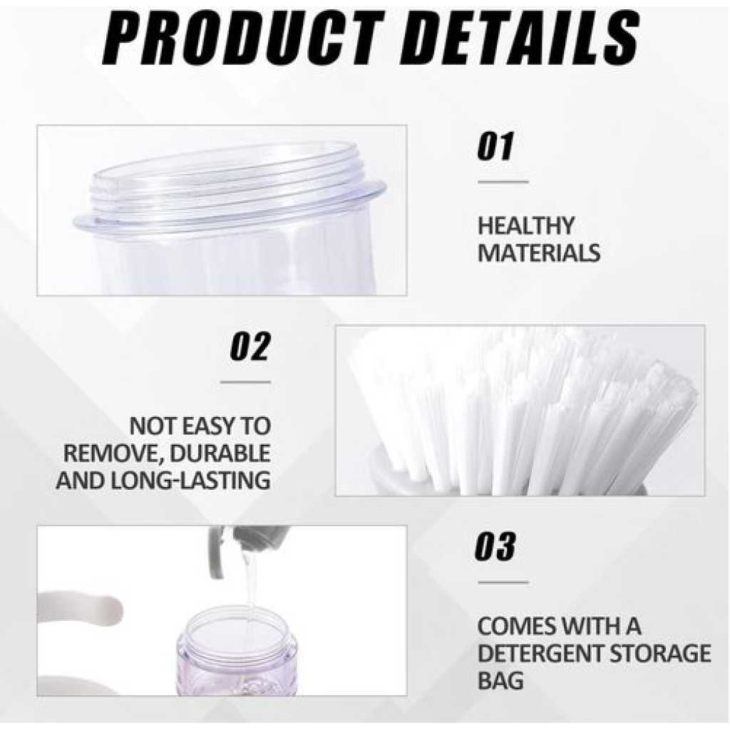 【Dish brush with storage stand】The dish brush comes with a shelf to keep it dry and hygienic. There are small holes in the drip tray that can pick up the water droplets inside, and the drip tray can be easily disassembled and unloaded.