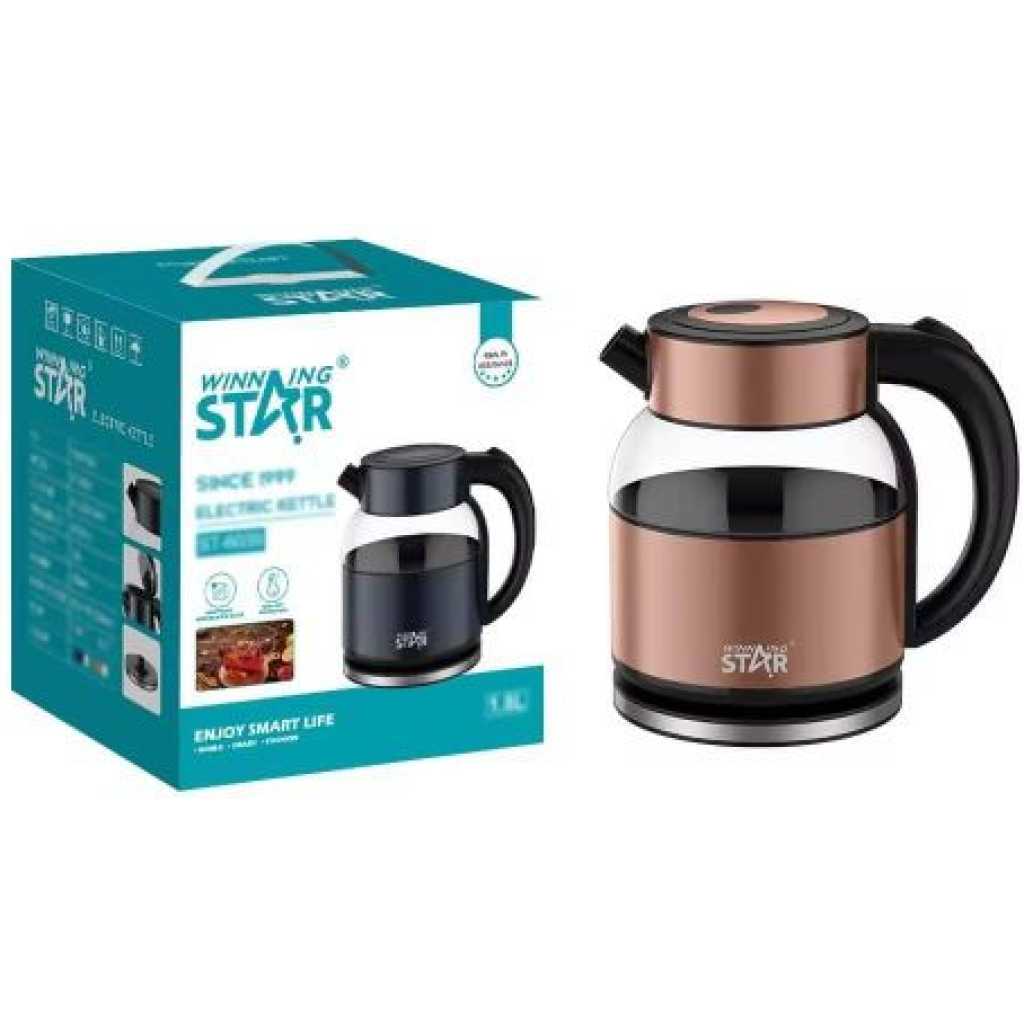 Enjoy rapid and safe boiling with the Winning Star 1.8L Instant Heat Glass Electric Kettle, designed for home, office, and kitchen use. With its sleek glass design, powerful heating element, and user-friendly operation, this kettle ensures a seamless boiling experience every time