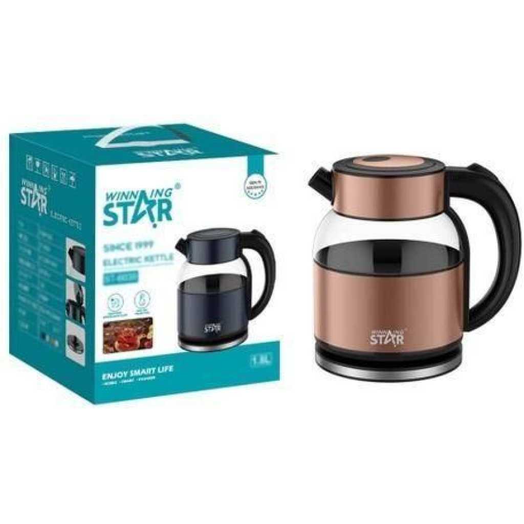 WINNING STAR 1.8 Litres Of Water Milk Boiling Cordless Fast Boiling Electic Kettle Flask Glass Tea Pot Serving Jar Rapid Boil System- Multicolor