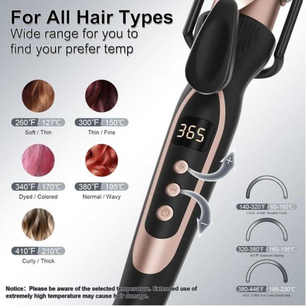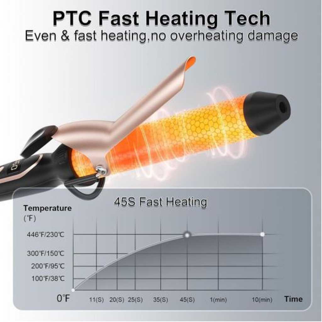 Equipped with advanced technology, this curling iron heats up in just 45 seconds, allowing you to style your hair quickly and efficiently. The temperature can reach up to 446℉, providing you with the perfect level of heat for your desired style.
