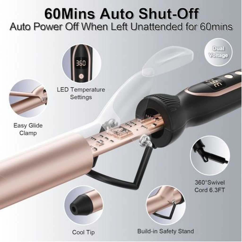 1.25 Inch barrel Curling Iron, the perfect tool for achieving salon-quality curls and waves. Designed for all hair types, this easy-to-use curling wand guarantees long-lasting results.
